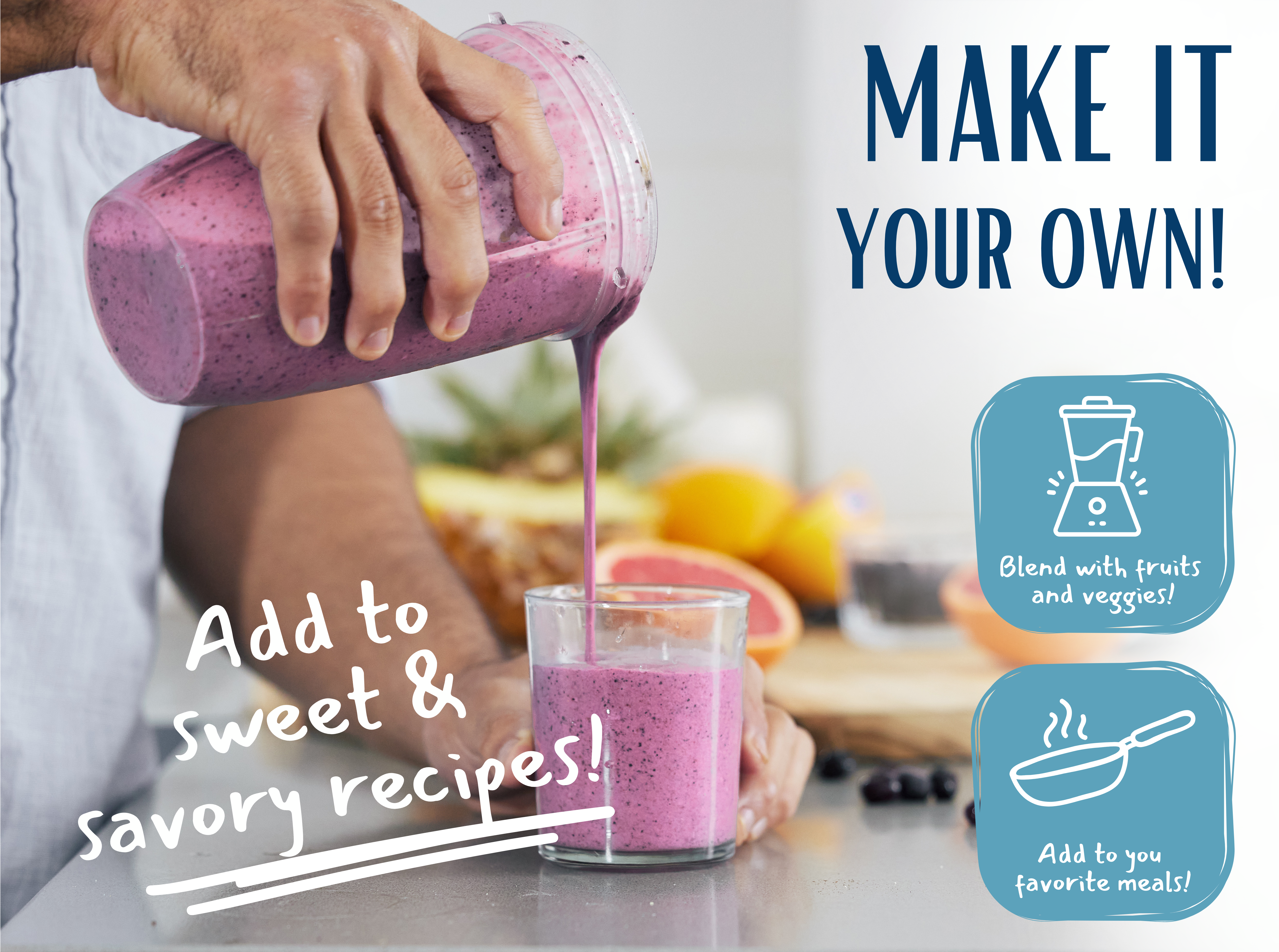 Discover the most nutritious and mineral-rich recipes put together by our team dietitian! Learn how to add OmniBlue to your favorite meals and beverages and enjoy a truly balanced diet.